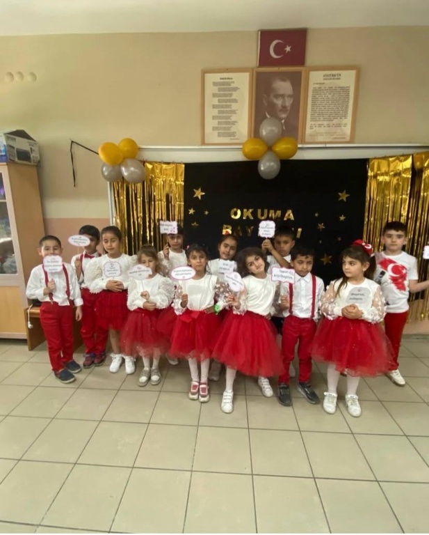 1. sınıflarımız artık okuyor ve yazıyor, okuma bayramı yaptık.