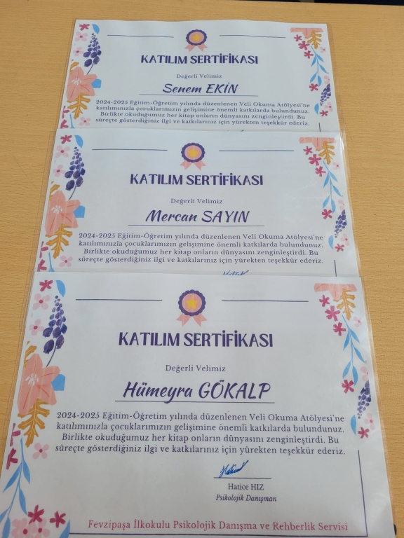 Öğretmeniz Hatice HIZ katılımcı velilerimize belgelerini verdi ve teşekkürlerini iletti.
